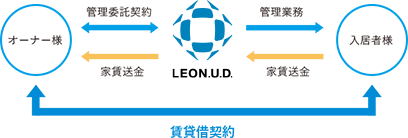 お部屋を弊社が一定期間借り上げて、入居者に転貸するシステムです。