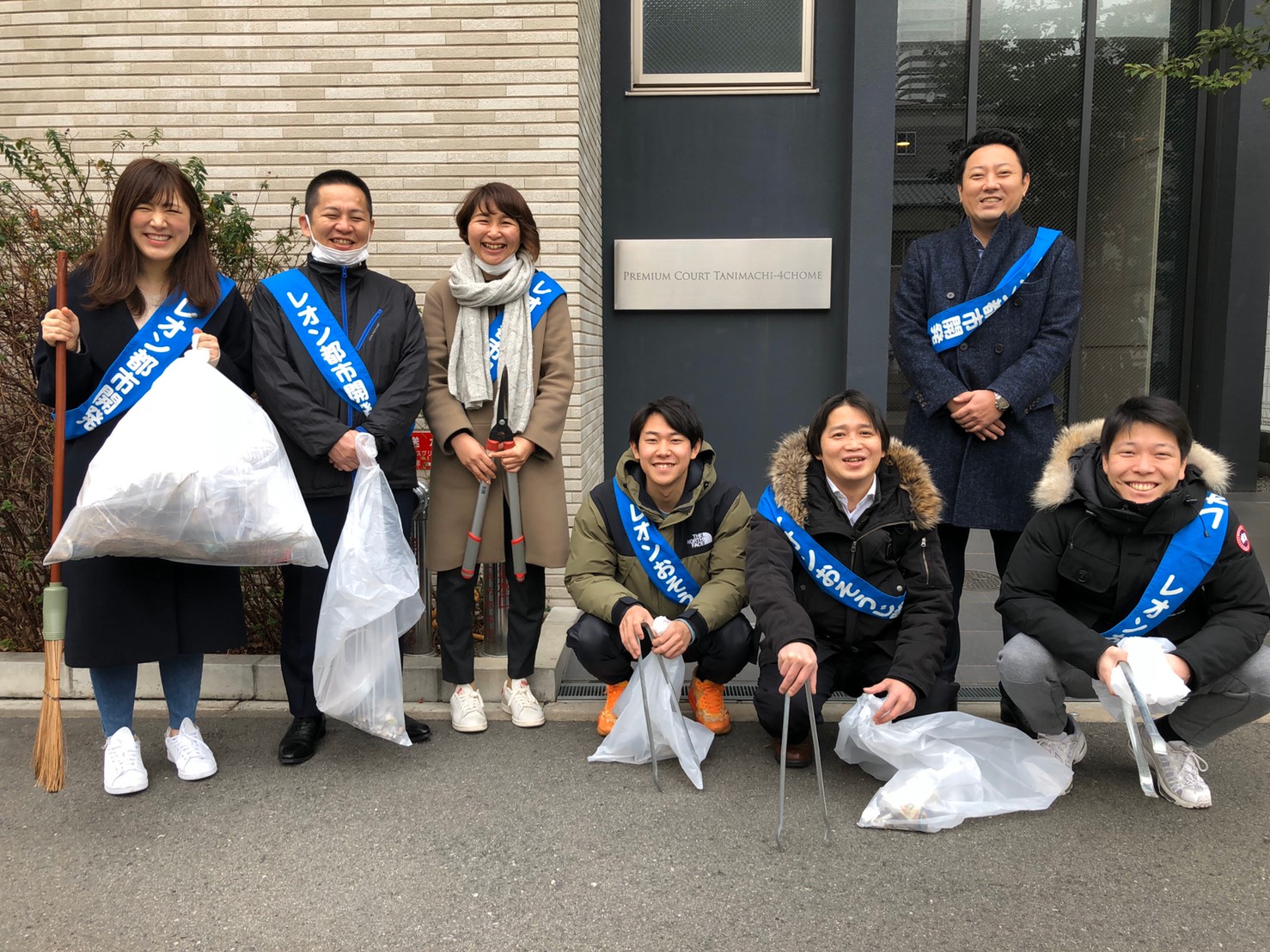 自社マンション周辺を社員が掃除をして、ご入居者様との交流やオーナー様の資産価値の向上、