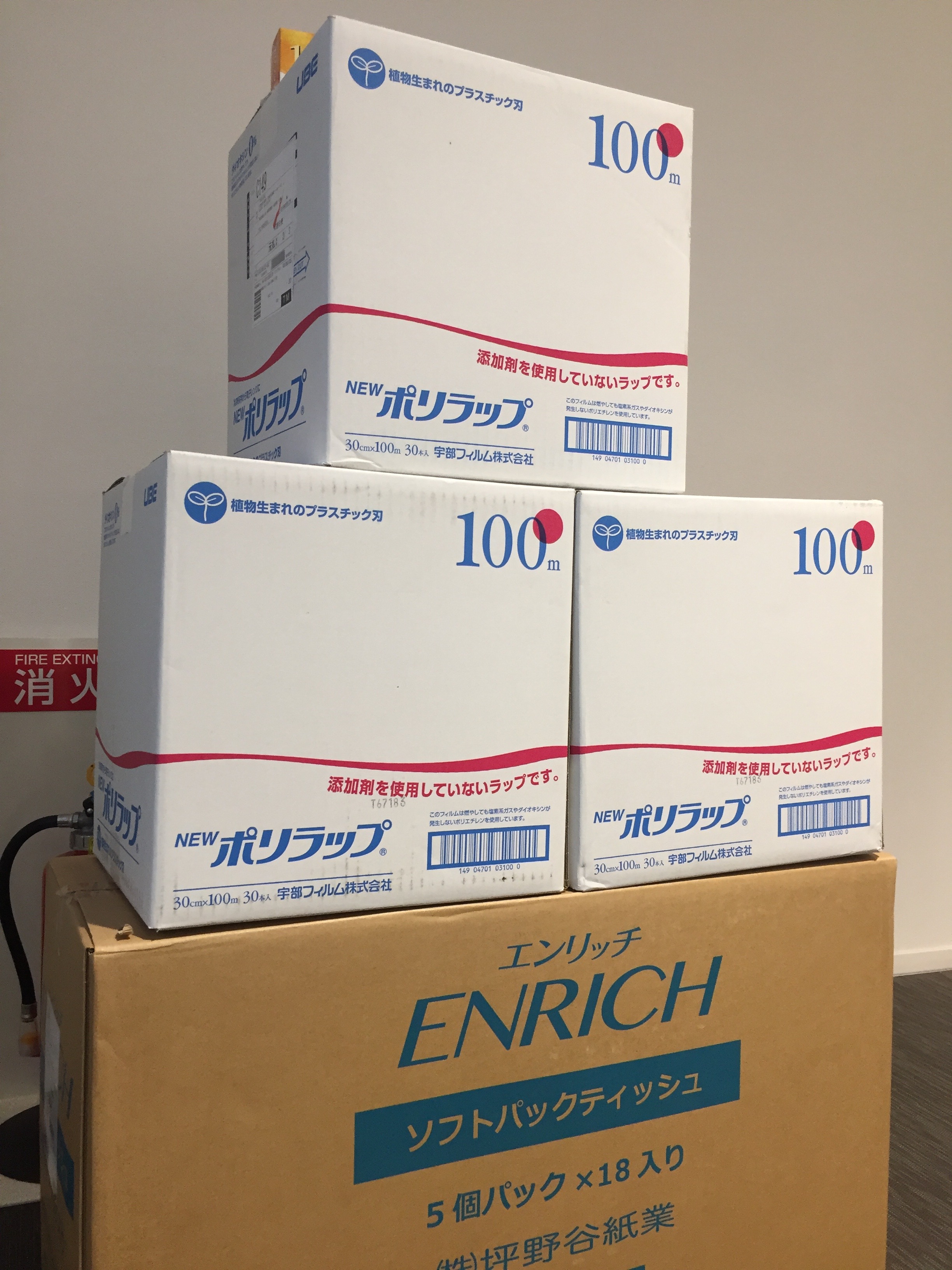 ポリラップ90本、ティッシュ90個を常備しておりますので 有事の際は、地域の皆様のお役に立てれば幸いです。