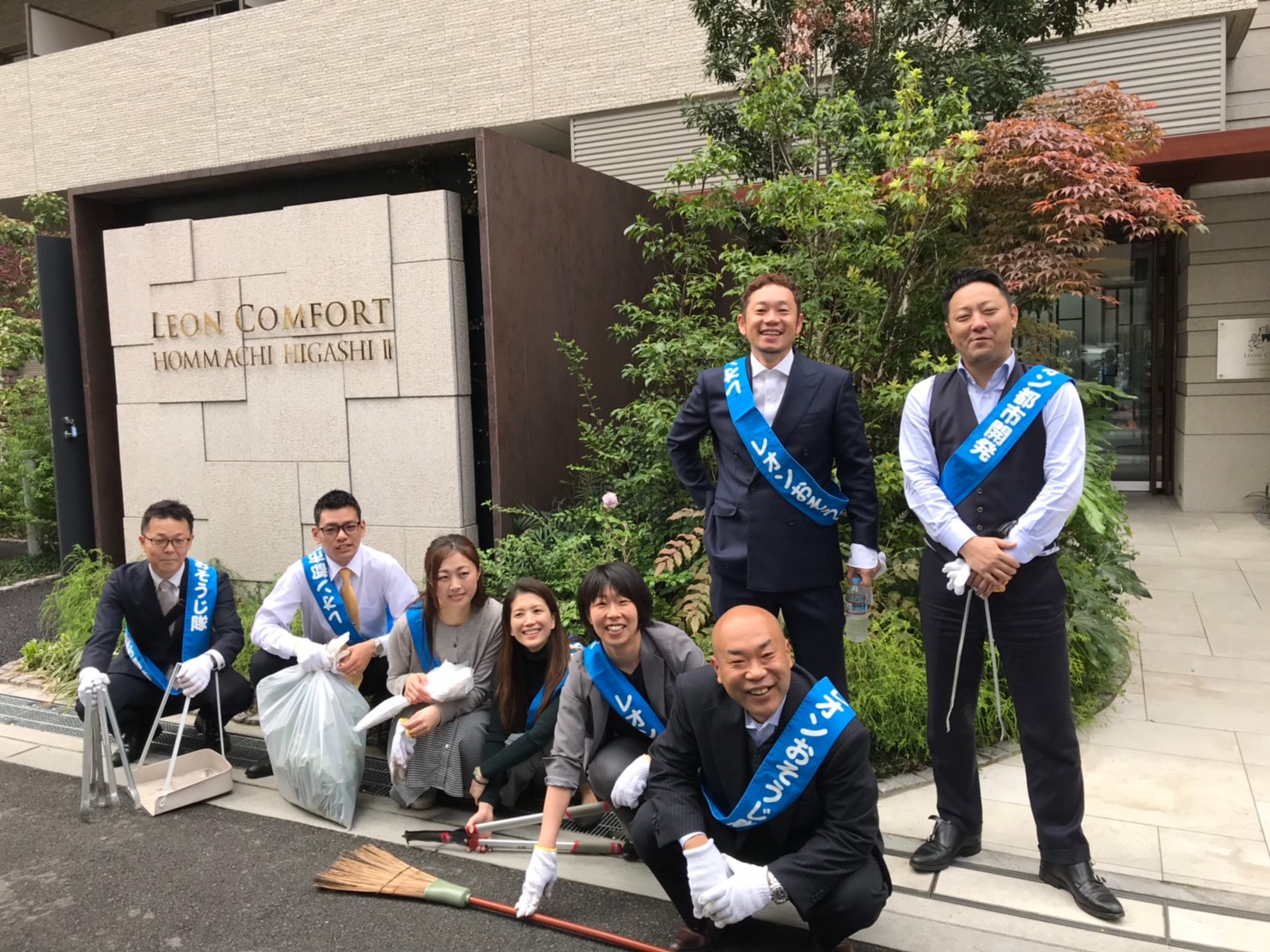 現在建築中の南新町、立売堀周辺を清掃いたしました。